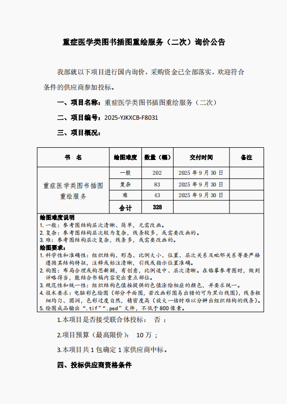 重症医学类图书插图重绘服务采购项目(二次)询价公告
